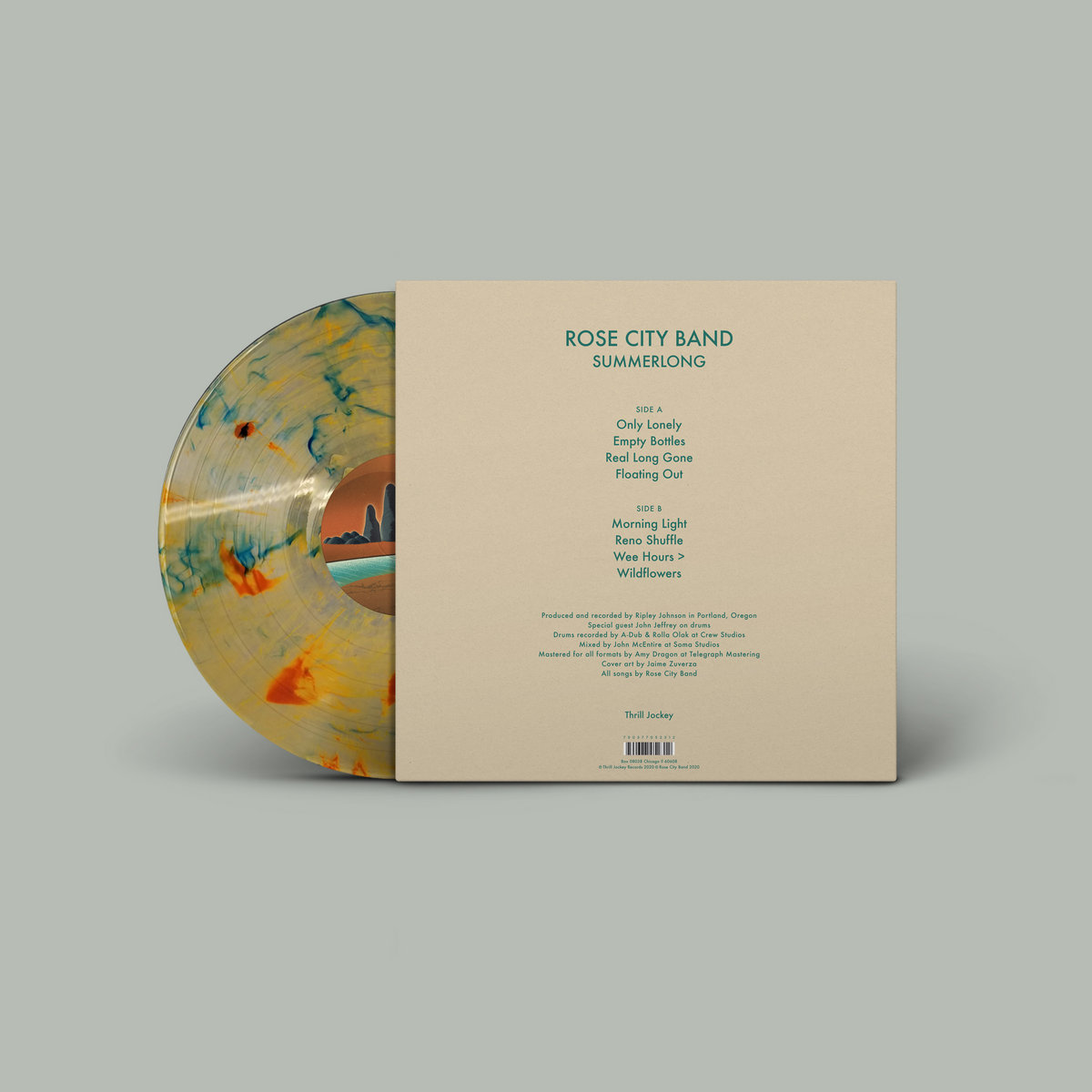 Rose City Band started purely as a recording project, with Johnson's role mostly obscured for the self-titled debut album. Released with no promotion, in the style of private press records, it was a liberating act, a focus on music without any expectations. Explaining it with a chuckle, Johnson elaborates, “I always would threaten to my friends that I’m gonna start a country rock band so I can retire and just play down at the pub every Thursday night during happy hour. I love being able to tour and travel, but I also like the idea of having a local band … more of a social music experience.” Freedom from expectation and obligation gave Johnson the space to experiment with new instrumentation and arrangements. The introduction of lap steel, mandolin, and jaw harp enhance Johnson’s lean guitar work with radiant overtones, placing Summerlong more overtly within the country tradition than its predecessor. Work on the album began at Johnson’s home studio in Portland during the summer, but, interrupted by touring, it would not be finished until the winter season. The dark isolation of winter and the pining for summer’s easier days can be felt in the album’s few quieter moments. Summerlong was mixed by John McEntire (Stereolab, Broken Social Scene, Tortoise) at his newly minted Portland Soma Studios and mastered by Amy Dragon at Telegraph Mastering, also based in Portland.